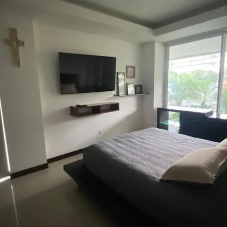 08- Acogedor Departamento Familiar Daire dairesinde tam donanımlı mutfağın yanı sıra çalışma masası, uydu kanallı düz ekran televizyon, iklim kontrolü içeren odalar bulunmaktadır. Bu daire, Hipermaxi Equipetrol'a 500 metre uzaklıktadır.